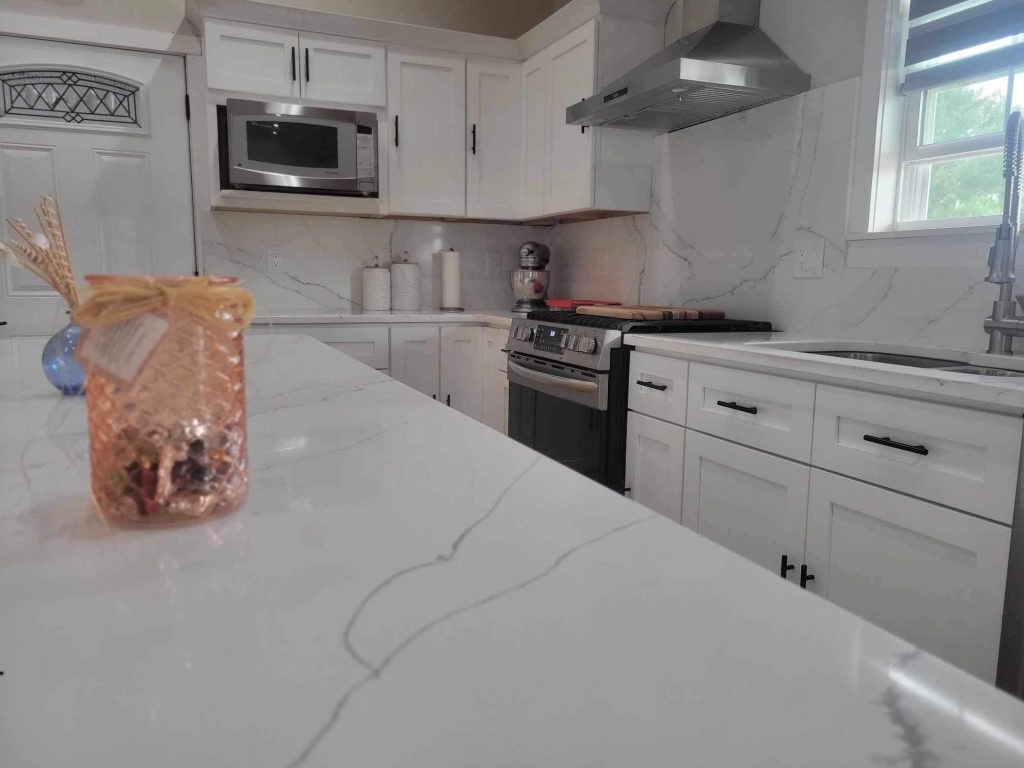 - Low Maintenance: Unlike natural stone, quartz countertops are non-porous, which means they won’t absorb liquids and are resistant to bacteria and mold growth. Cleaning is a breeze with simple soap and water.